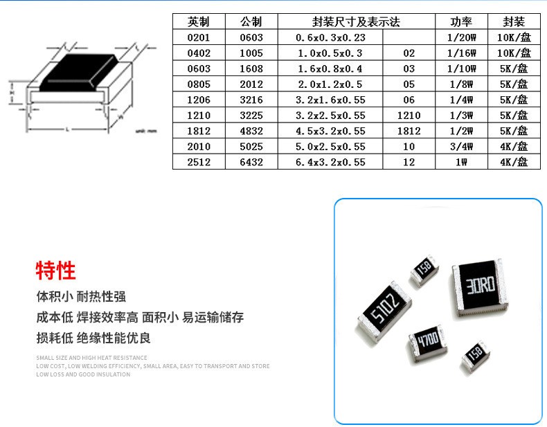 常規(guī)電阻:01005,0201,0402,0603,0805,1206